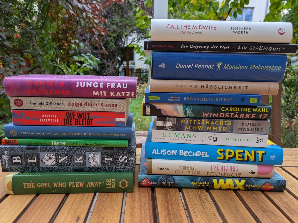 Hier nun weiter mit einer bunten Mischung. Und gleich dem feministischen Buch, das definitiv bleiben wird: Die Wut, die bleibt. Ich habe auch das neuere Buch von Mareike Fallwickl hier liegen: Alle so still. Ich hatte auch schon angfangen, bin dann aber wieder abgebrochen. Und dann habe ich hier angefangen und konnte nicht mehr aufhören zu lesen. Es beginnt mit einer Mutter, die in der Corona Zeit Selbsmord begeht. Sie steht vom Esstisch mit mit der Familie auf, geht auf den Balkon und springt runter. Wie ihre Tochter und ihre beste Freundin mit diesem Tod umgehen, wie die Geschichte dieser drei Frauen verwoben ist, dass wird in diesem Buch absolut meisterhaft beschrieben. Die kleinen Momente, die die Unsichtbarkeit und Geringschätzung von weiblicher Arbeit wie aus dem Augenwinkel schildern und sehr deutlich machen. Und die Beschreibung der Veränderung von Mädchen, wenn sie alle auf unterschiedliche Weise das erste Mal deutlich ihre Ohnmacht als Menschen zweiter Klasse, Menschen mit weniger Rechten, Menschen, denen Gewalt angetan wird, eben weiblichen Menschen im Patriarchat! Die Wut die belibt ist der beste Titel ever! Und definitiv dass was bleibt. Uneingeschränkt zu empfehlen. Es hilft die Wut zu kanalisieren, deutlicher wahrzunehmen und nicht so schnell zu verdrängen. Und das ist sehr gut!