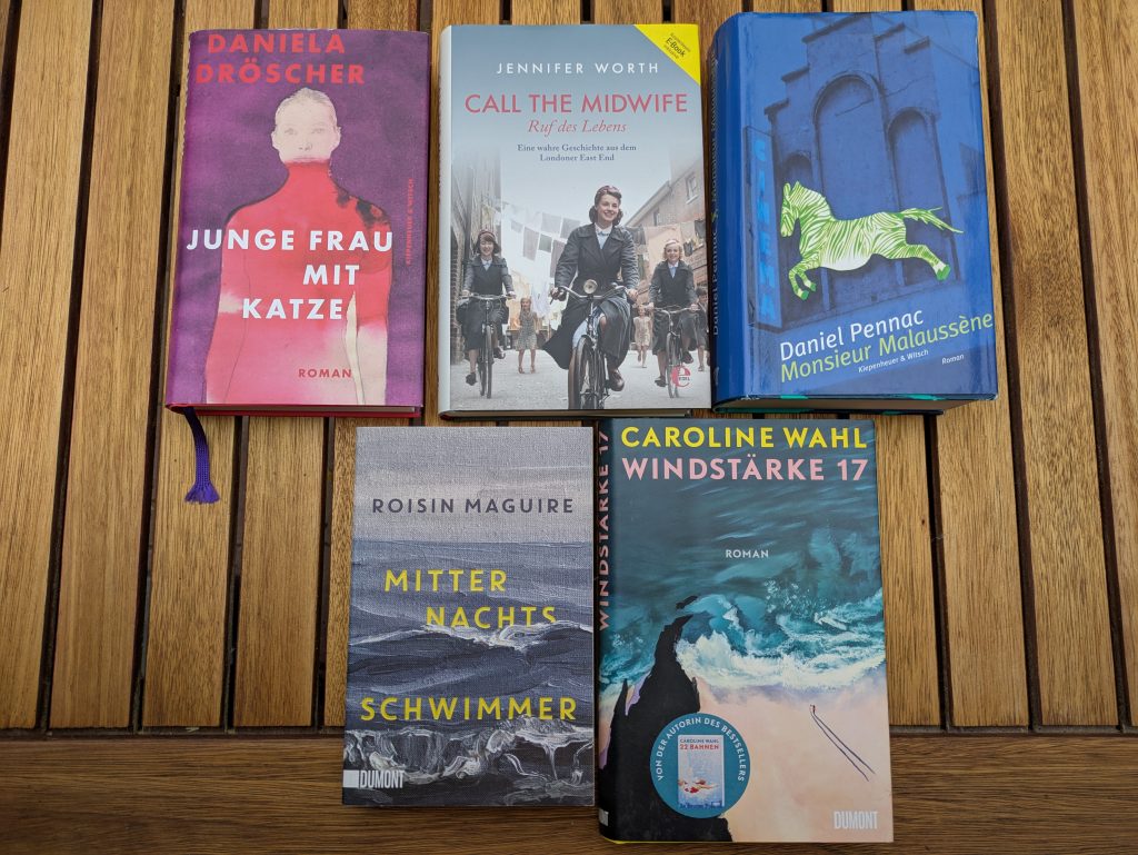 „Mitternachtsschwimmer“ von Roisin Maguire musste ich mir kaufen, da gleich mehrere Knöpfe bei mir gedrückt waren: Irland, Schmimmen im Meer und dann noch eine ansprechender Umschlag. Es handelt von einem Mann, der für eine Woche in eine abgelegenes Ferienhaus auf einer irischen Insel fährt, weil er und seine Frau nicht mehr miteinander auskommen. Ihr zweites Kind ist am plötzlichen Kindstod gestorben und beide gehen ganz unterschiedlich damit um. Dann kommt der Corona Lockdown und aus der einen Woche Flucht wird dann eine ganze Weile. Es geht um Trauer, Schuld, dem sich auseinander-Leben und der Auseinandersetzung mit dem wer man ist und dem. der man sein wollte oder vielleicht noch sein will. Und dem Meer und dem Schwimmen. Jetzt wo ich drüber nachdenke: eher ein gutes Buch. Nur zum Ende fand ich es zu glatt. Es ist schon weiter gezogen.